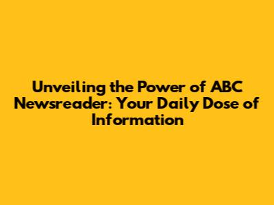 Unveiling The Power Of ABC Newsreader: Your Daily Dose Of Information