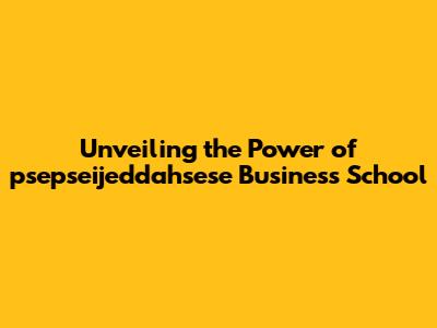 Unveiling The Power Of Psepseijeddahsese Business School