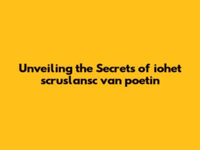 Unveiling The Secrets Of Iohet Scruslansc Van Poetin