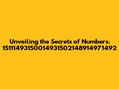 Hey guys! Ever stumble upon a sequence of numbers that just seems to hang around, like that recurring dream or a song you can't get out of your head? We're diving deep into just such a sequence: 15111493150014931502148914971492. Now, I know what you're thinking: "Woah, that's a mouthful!" But trust me, there's a fascinating story behind every number, and this one is no exception. This isn't just about random digits; it's a journey, a puzzle, and potentially, a hidden message waiting to be deciphered. We're going to break it down, explore what it could mean, and maybe, just maybe, unlock a secret or two. Ready to get started?