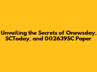 Unveiling The Secrets Of Onewsday, SCToday, And 002639SC Paper