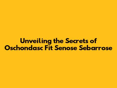 Unveiling The Secrets Of Oschondasc Fit Senose Sebarrose