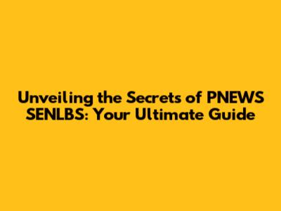 Unveiling The Secrets Of PNEWS SENLBS: Your Ultimate Guide