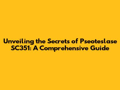 Unveiling The Secrets Of Pseoteslase SC351: A Comprehensive Guide