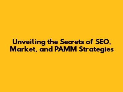 Unveiling The Secrets Of SEO, Market, And PAMM Strategies