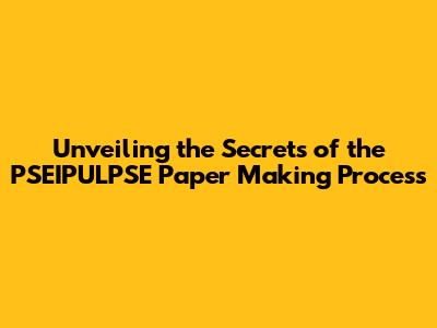 Unveiling The Secrets Of The PSEIPULPSE Paper Making Process