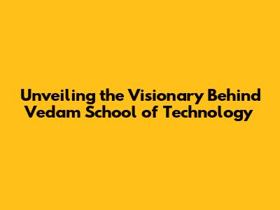 Unveiling The Visionary Behind Vedam School Of Technology