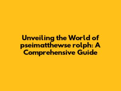 Unveiling The World Of Pseimatthewse Rolph: A Comprehensive Guide