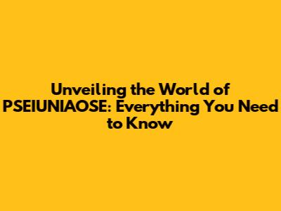 Unveiling The World Of PSEIUNIAOSE: Everything You Need To Know