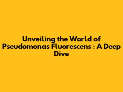 Unveiling The World Of Pseudomonas Fluorescens: A Deep Dive