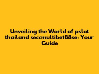 Unveiling The World Of Pslot Thailand Seccmultibet88se: Your Guide