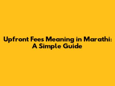 Upfront Fees Meaning In Marathi: A Simple Guide