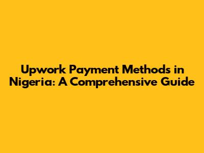 Upwork Payment Methods In Nigeria: A Comprehensive Guide
