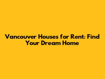 Vancouver Houses For Rent: Find Your Dream Home