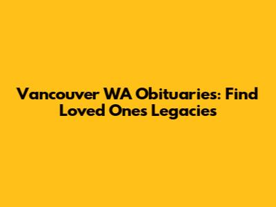 Vancouver WA Obituaries: Find Loved Ones' Legacies