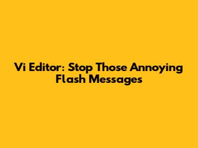 Hey guys, ever been working in the Vi editor and gotten totally thrown off by those pesky flash messages? You know, the ones that pop up at the bottom of the screen, like ""No such file or directory"" or ""Search pattern not found""? They can be super distracting, especially when you're trying to concentrate on coding or editing a document. But don't worry, because I'm here to walk you through how to stop flash messages in Vi and reclaim your focus. We'll dive into the world of Vi configuration, exploring different ways to customize your editor and banish those annoying interruptions. Let's get started!