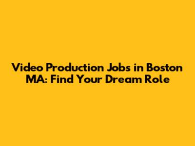 Video Production Jobs In Boston MA: Find Your Dream Role