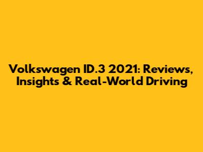 Volkswagen ID.3 2021: Reviews, Insights & Real-World Driving