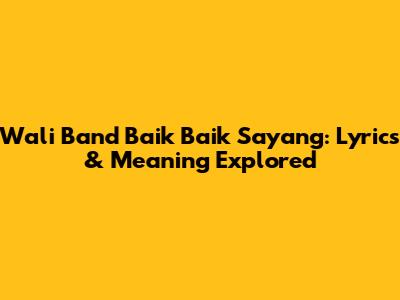Wali Band Baik Baik Sayang: Lyrics & Meaning Explored
