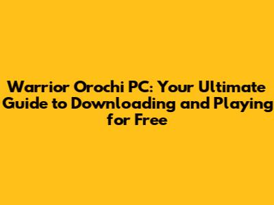 Warrior Orochi PC: Download & Gameplay Guide