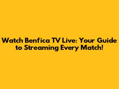 Watch Benfica TV Live: Your Guide To Streaming Every Match!