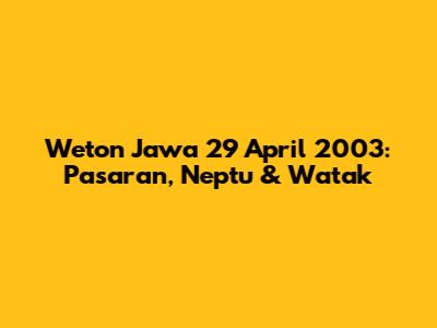 Hey guys! Pernah nggak sih kalian penasaran sama arti weton pasaran Jawa, terutama kalau ada tanggal lahir tertentu yang bikin penasaran? Nah, kali ini kita bakal kupas tuntas soal weton untuk tanggal 29 April 2003. Ini dia informasi lengkapnya buat kalian yang pengen tahu lebih dalam soal kecocokan, rezeki, dan sifat yang mungkin dimiliki seseorang dengan weton ini. Siap-siap ya, karena kita bakal bedah semuanya, mulai dari pasaran, neptu, sampai watak yang melekat. Dijamin informatif dan pastinya seru buat dibaca!