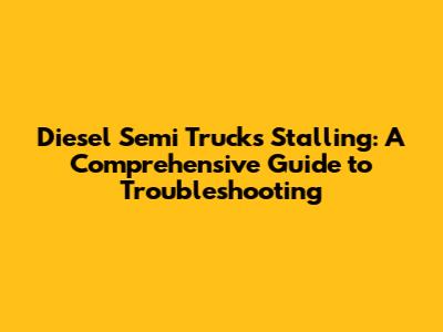 Why Are Diesel Semi Trucks Stalling? Troubleshooting Guide