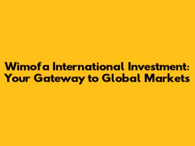 Wimofa International Investment: Your Gateway To Global Markets