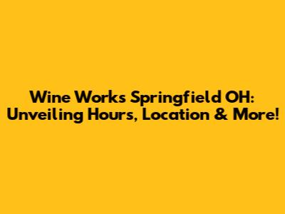 Wine Works Springfield OH: Hours, Location & More!