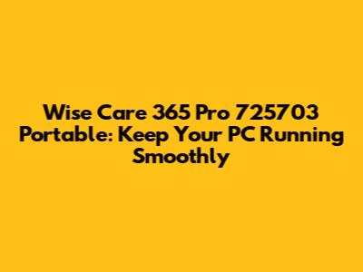 Hey guys! Are you tired of your computer running like a snail? Do you dream of a clean, fast, and efficient system without the hassle of complicated installations? Well, you're in luck! Today, we're diving deep into Wise Care 365 Pro 725703 Portable, a fantastic tool designed to keep your PC in tip-top shape. This isn't just another system utility; it's your all-in-one solution for PC optimization, privacy protection, and overall performance enhancement, and the best part? It's portable, meaning you can carry it on a USB drive and use it on any computer without installation! Let's explore what makes Wise Care 365 Pro Portable a must-have in your digital toolkit.