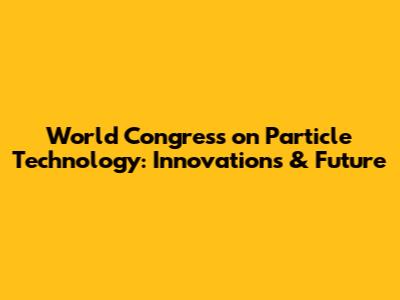 World Congress On Particle Technology: Innovations & Future
