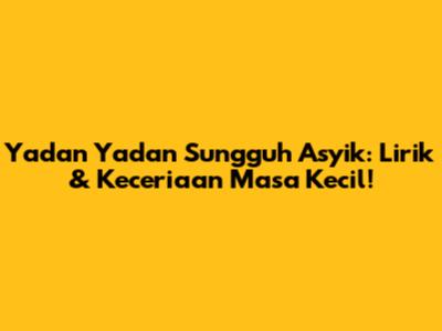 Hey guys! Siapa di sini yang masa kecilnya diwarnai dengan lagu riang berjudul "Yadan Yadan Sungguh Asyik"? Lagu ini memang evergreen banget ya, selalu berhasil membangkitkan kenangan indah dan keceriaan masa lalu. Nah, buat kamu yang lagi kangen atau pengen nostalgia, yuk kita bahas tuntas lirik lagu ini dan kenapa lagu ini begitu melekat di hati!