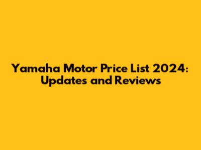 Yamaha Motor Price List 2024: Updates And Reviews