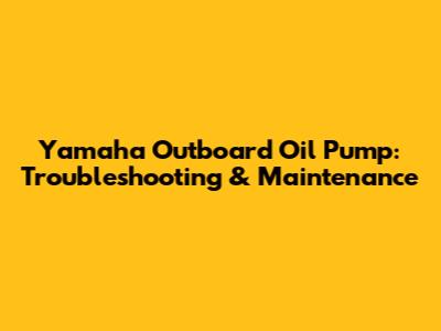 Yamaha Outboard Oil Pump: Troubleshooting & Maintenance