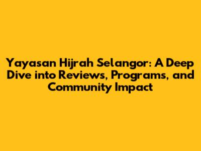 Yayasan Hijrah Selangor: Reviews, Programs, And Impact