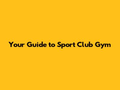 Your Guide To Sport Club Gym