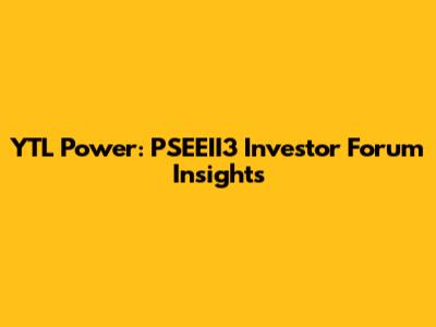 Hey guys! Let's dive into the recent PSEEII3 Investor Forum focused on YTL Power. This event brought together key players and stakeholders to discuss the future trajectory of YTL Power, a company that’s been making some serious waves in the energy sector. If you're an investor, or just curious about what's next for YTL Power, you're in the right place. We’re going to break down the important stuff, the kind of information that can really help you understand the company’s potential and strategic direction. So, buckle up, because we’ve got a lot to unpack, and trust me, you won’t want to miss this.