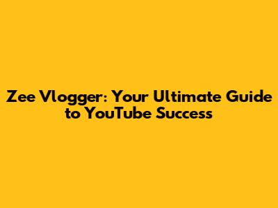 Zee Vlogger: Your Ultimate Guide To YouTube Success
