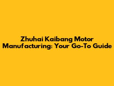 Zhuhai Kaibang Motor Manufacturing: A Comprehensive Guide