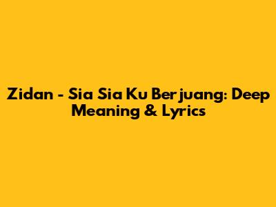 Zidan - Sia Sia Ku Berjuang: Deep Meaning & Lyrics